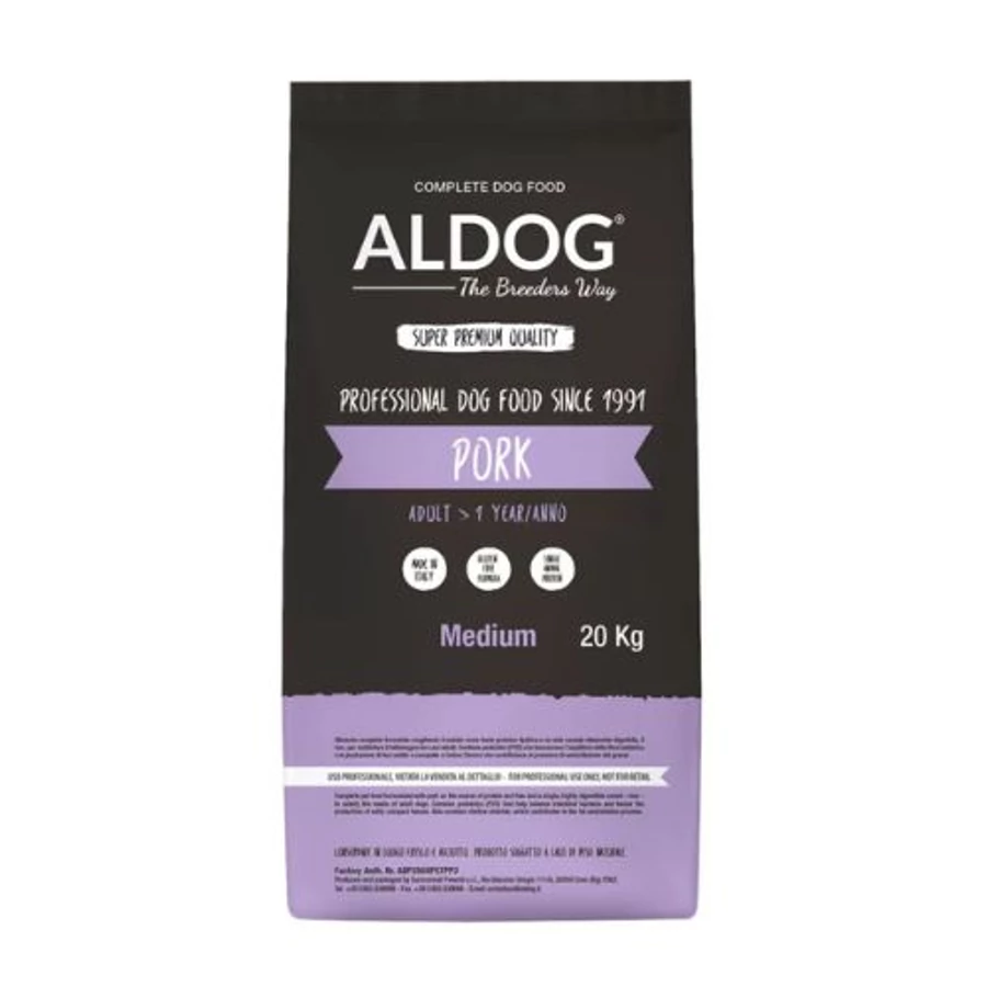 Az Aldog Adult Medium Pork egy teljes értékű kutyatáp felnőtt kutyák számára. Ideális választás közepes és nagytestű kutyák számára, akiknek fontos a minőségi fehérje és zsírsavak bevitele.