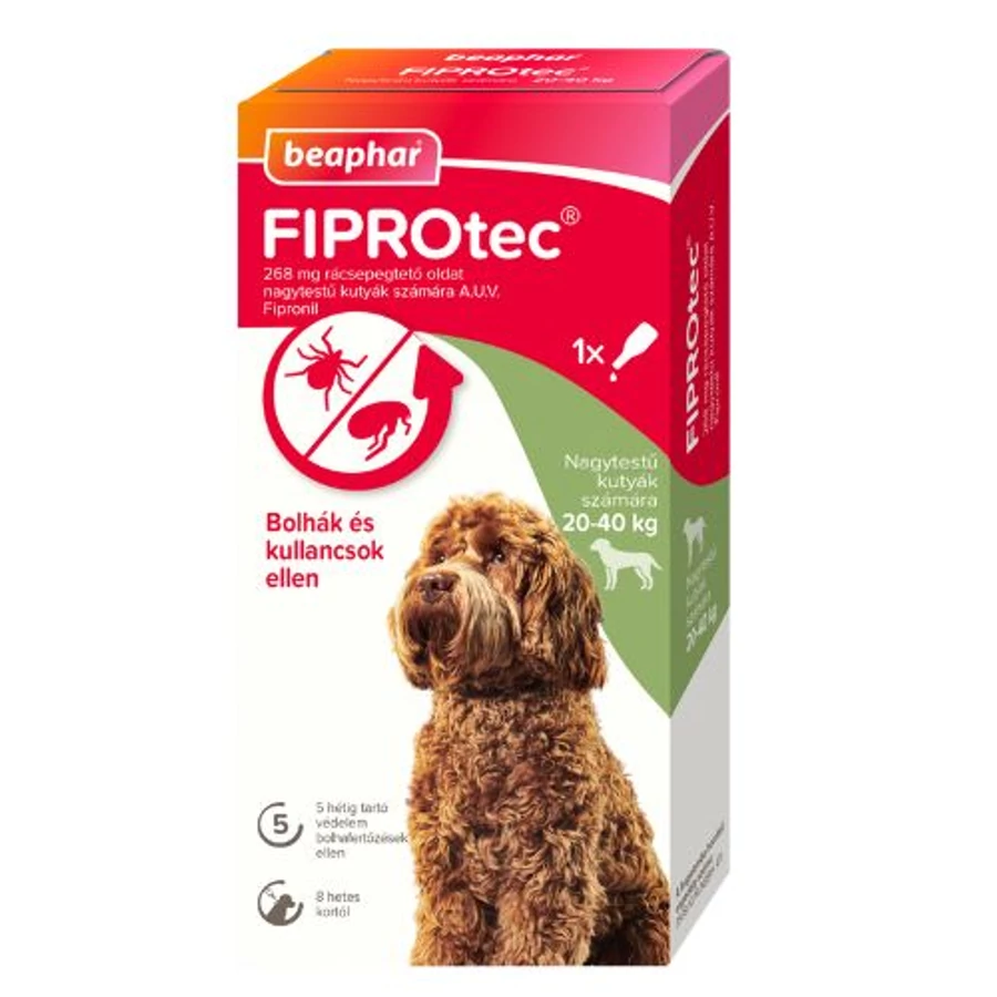 A Beaphar Fiprotec Dog L rácsepegtető oldat 5 héten át védi kutyádat a bolhák ellen, és védelmet nyújt az újonnan megjelenő kullancsokkal szemben.