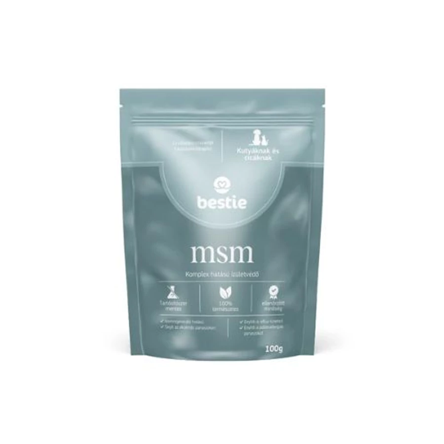 A Bestie MSM egy minőségi komplex hatású ízületvédő kutyák számára.