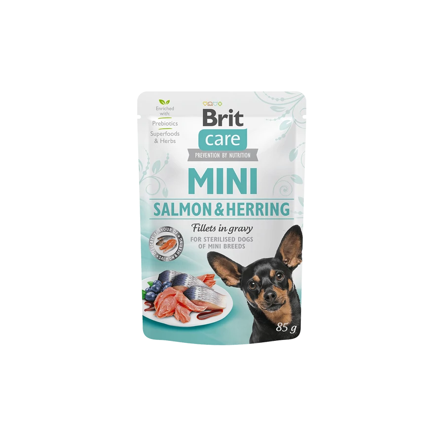 A Brit Care Mini nedves eledel lazaccal és heringgel olyan teljes értékű táplálék, amely speciálisan kistestű kutyák (10 kg-ig) igényeire van szabva. Ezekre a fajtákra jellemző a magas anyagcsere, a gyorsabb érés és az emésztési problémák, így az eledel kifejezetten ezen szükségletek kielégítésére lett tervezve.