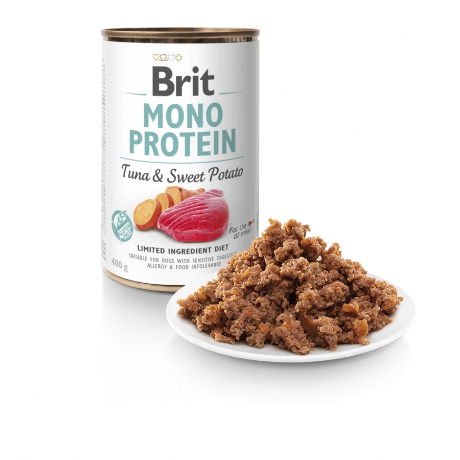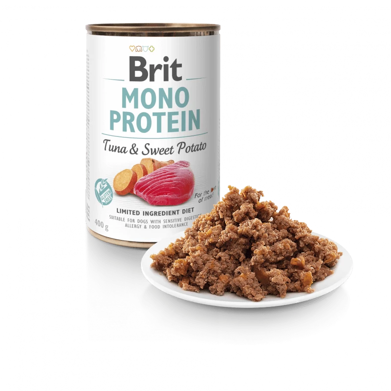 A Brit Mono Protein Tonhal & Édesburgonya egy teljes értékű nedves eledel, amely kifejezetten kutyák számára készült. A rendkívül egyszerű és tiszta receptúra csak egyféle fehérjeforrást, a tonhalat tartalmazza, és ezzel ideális választás lehet olyan kutyáknak, akik érzékenyek az élelmiszerekre, vagy akiknek emésztési problémáik vannak.