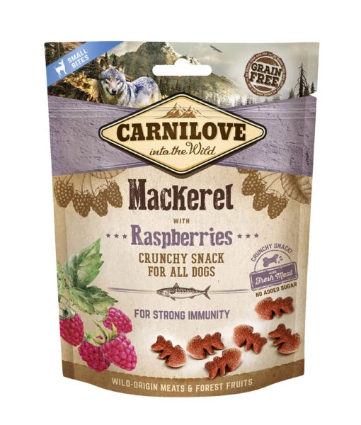 A málnás snack hihetetlenül finom! Olyan szaga van, mintha egy kakaós, málnás süti lenne. Persze ez makrélás:) Kutyusnak nagyon ízlik, nekem meg az tetszik, hogy végre egy olyan jutifalat, amit bátran bedobhatok akár a zsebembe is, mert nem büdös.