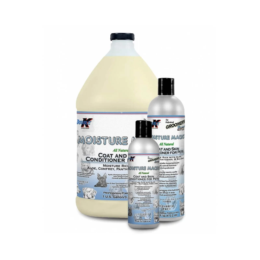 A MOISTURE MAGIC® segít megőrizni a szőr vitalitását, megtartja belső nedvességtartalmát, pH-egyensúlyát. „Mágikus” balzsam, amely bedolgozás közben tökéletesen felszívódik a száraz, töredezett szőrben, lágyítva azt. A szárítás végén selymes, fénylő szőrzetet kapunk. Extra száraz szőrzet esetén hígítás nélkül, általánosan 4x-es hígításban, öblítőként használható. Egyenesít, elsősorban testhez simuló szőrre ajánlott, mint pl. yorki, máltai stb. Friss, tiszta illattal.