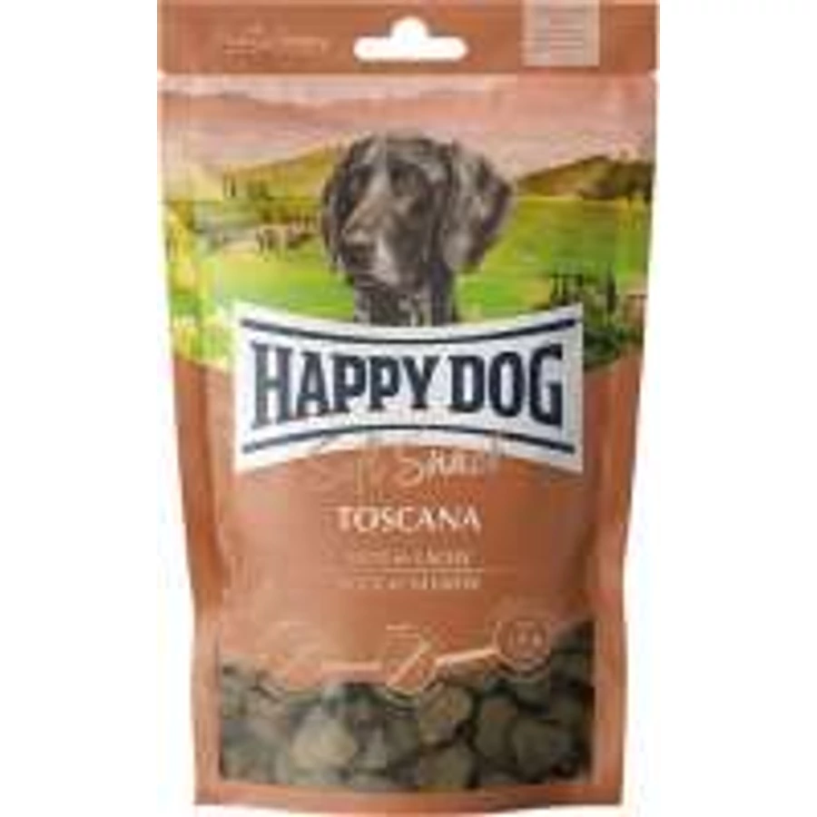 A Happy Dog Soft Snack Toscana egy ízletes lazacos és kacsás csemege kutyák számára.