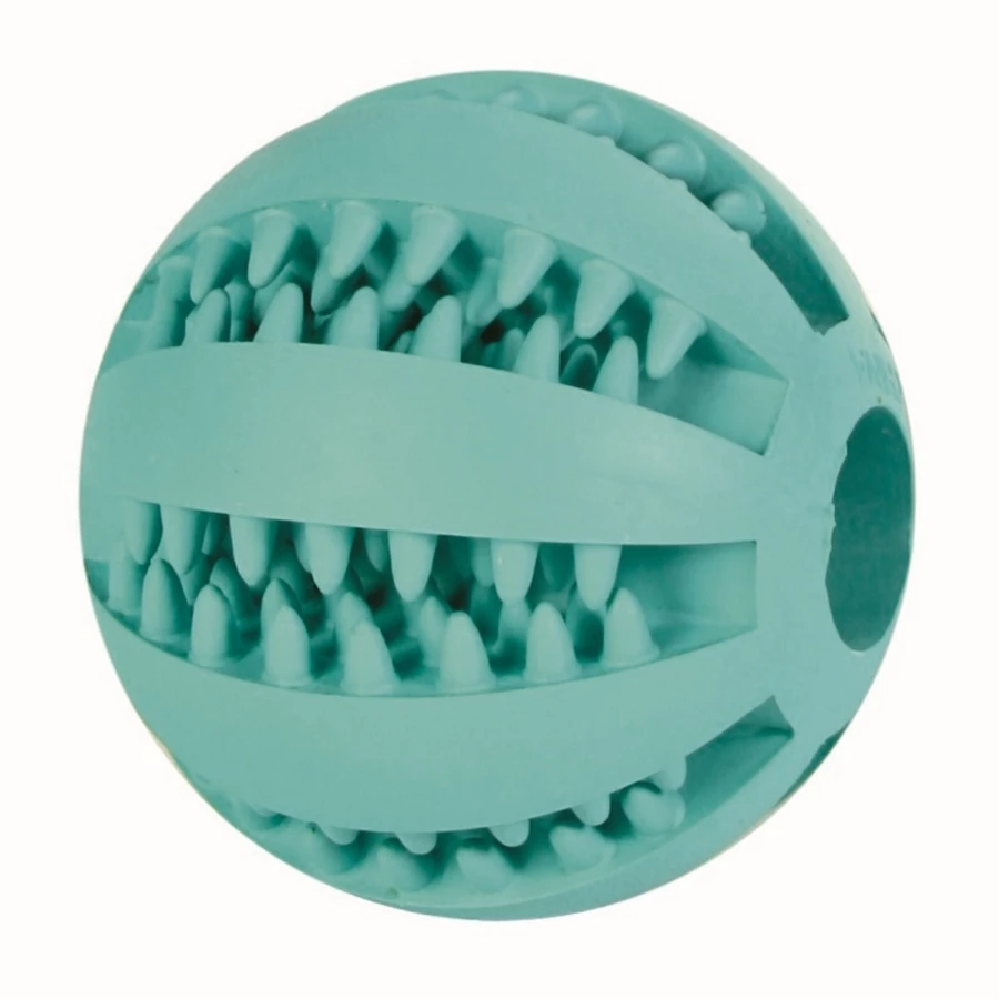 A labda mentol aromával ellátott a friss lehellet érdekében, míg a felülete úgy lett kialakítva, hogy finoman masszírozza kedvencünk fogait, ínyét ezzel segítve eltávolítani a fogkövet és a lepedéket. A labda természetes gumiból készült így nyugodtan adhatjuk kedvencünknek.