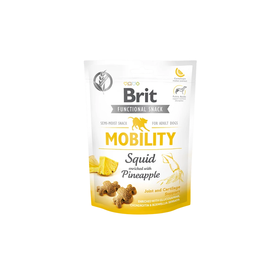 A Brit Care Dog Functional Snack Mobility Squid egy kiváló minőségű jutalomfalat, mely kifejezetten az ízületek és porcok támogatására lett tervezve. Glükozaminnal, kondroitinnal, tömjénnel és zöldkagyló-kivonattal gazdagítva, segít az ízületek és porcok egészségének megőrzésében.