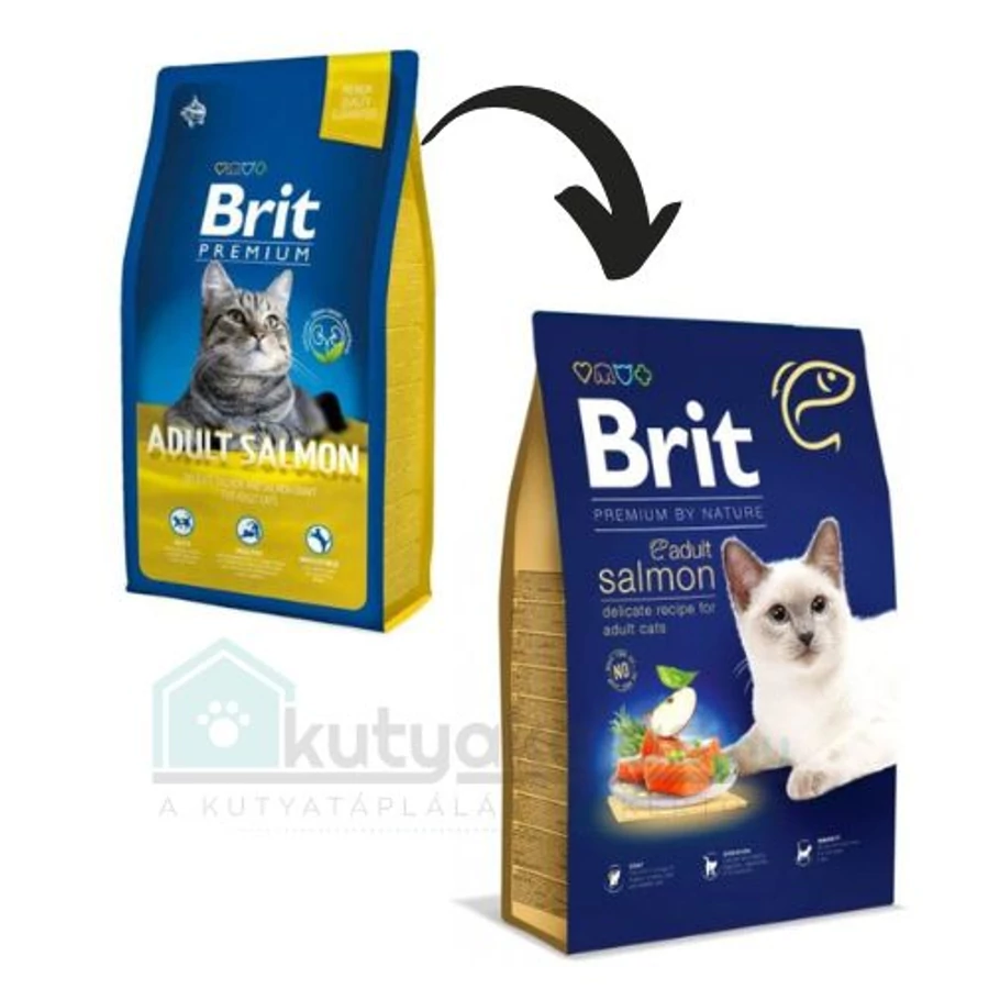Brit Premium Cat Adult Salmon szárazeledel felnőtt cicusoknak nyújt teljes értékű táplálékot.