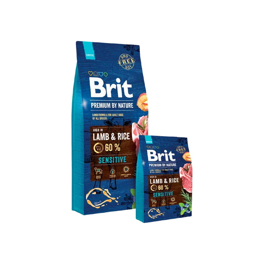 A Brit Premium by Nature Sensitive Lamb Rice egy ínycsiklandó, hipoallergén összetételű, bárányhúsos száraztáp felnőtt kutyáknak.