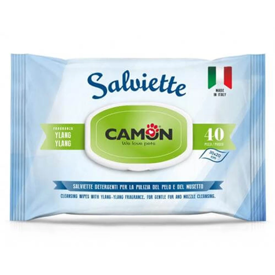 Camon általános tisztító kendő cicáknak és kutyáknak, ideális választás a tappancsok, fülek és a bunda tisztán tartására, akár otthon akár séta közben. Segít megszabadulni a kellemetlen szagoktól.