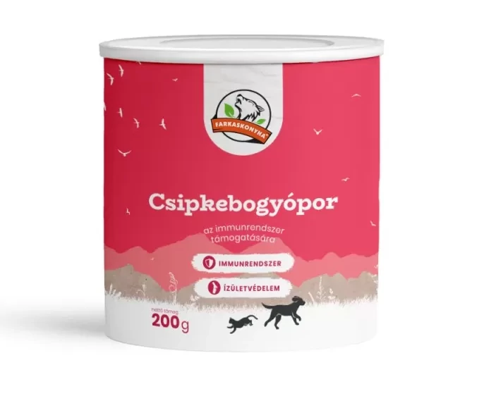 - A csipkebogyópor magas C-vitamin tartalmának köszönhetően erősíti a kutyák és macskák immunrendszerét, segítve őket a betegségek elleni védekezésben.