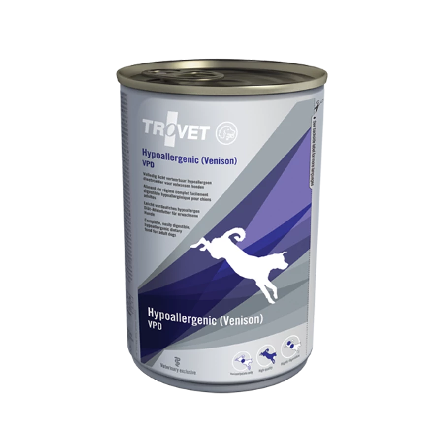 A Trovet Hypoallergenic Diet tápok kizárólag egyféle fehérje és egyféle szénhidrát összetevőt tartalmaznak, olyanokat, amelyek ritkán váltanak ki allergiás reakciót, ezért ideális eledel olyan kutyusok számára, akik táplálékallergiával vagy érzékenységgel küzdenek.