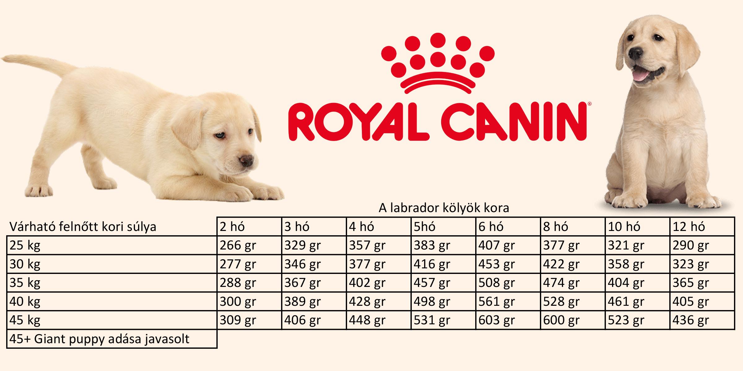 Miután nagyon sokan keresitek a labrador etetési táblázatot, létrehoztuk nektek! Természetesen számít az, hogy milyen táppal etetitek haspók kedvencetek, mi egy sok tenyésztő által kedvelt, a Royal canin puppy adagolási táblázat szerint mutatjuk be nektek. A Royal Canin adagolási táblázat nagy segítséget nyújt abban, hogy pontosan meghatározzuk, mennyi eledel szükséges egy kutya számára a mérete, életkora és aktivitási szintje alapján.