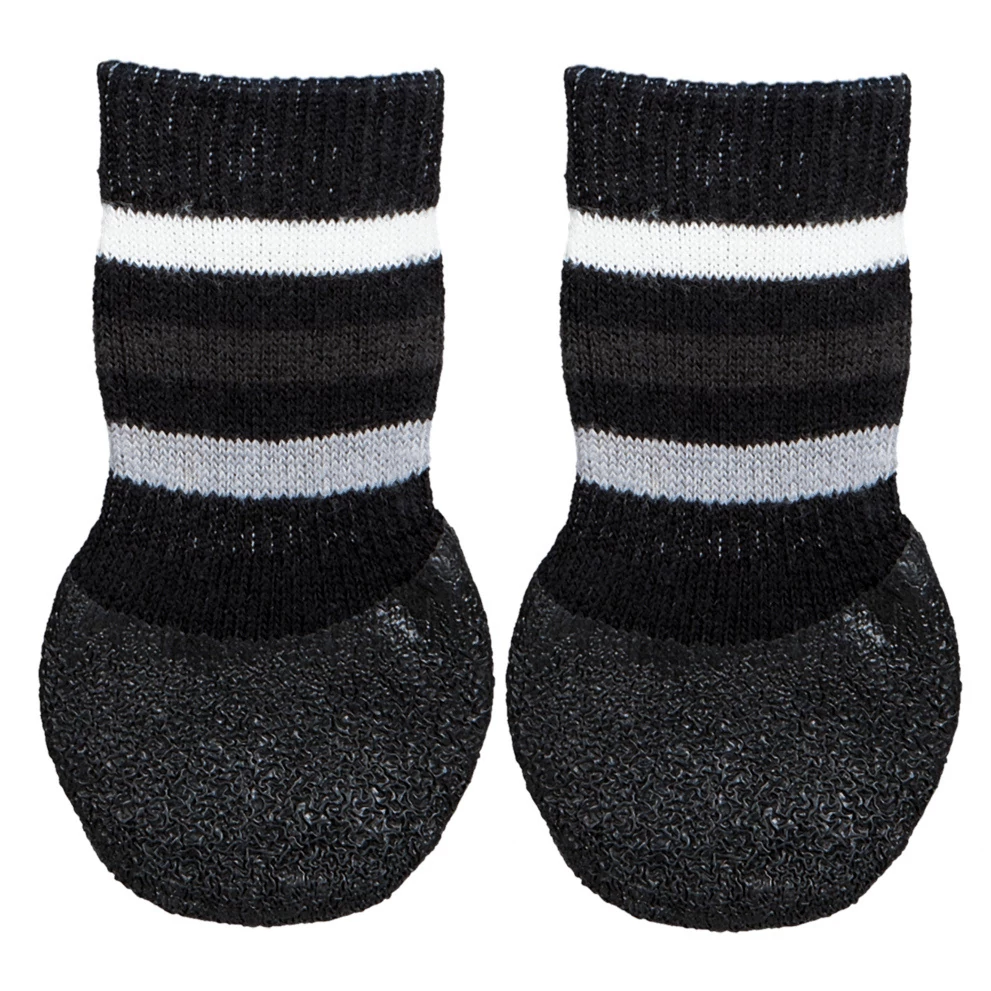 Trixie Dog Socks csúszásgátló felülettel ellátott, pamut védőzokni érzékeny vagy sebes lábra. Különösen alkalmas a láb illetve a tappancs sérüléseinél, vagy lakásban tartott kutyáknál a padló és bútorok védelmére. A zokni pamut anyaga jól szellőzik, és a talpa teljes felületén "non-slip rubber" csúszásgátló gumi bevonattal rendelkezik.