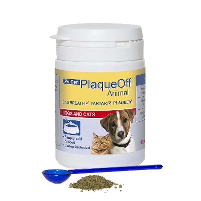 Társállatunk szájhigiéniájának elhanyagolása hozzájárulhat ínyproblémák és fogágy-elváltozások kialakulásához. A megfelelő fogápolás fontos része az általános jóllét fenntartásának. A PlaqueOff Animal otthoni használatra alkalmas, könnyen alkalmazható szájhigiéniai kiegészítő kutyák és macskák számára.