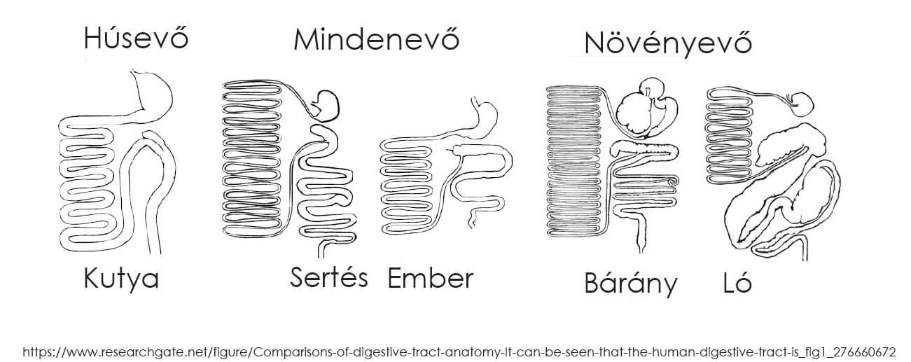 kép: https://www.researchgate.net/figure/Comparisons-of-digestive-tract-anatomy-It-can-be-seen-that-the-human-digestive-tract-is_fig1_276660672