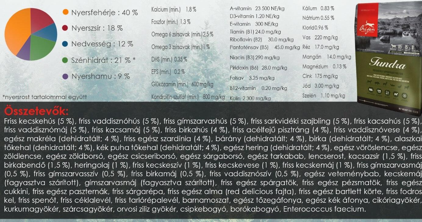 Kiemelkedő eredménnyel az elsők között, 137 ponttal találjuk meg az Orijen Tundra kutyatápját, ami talán nem meglepő az összetevők sorát böngészve.
