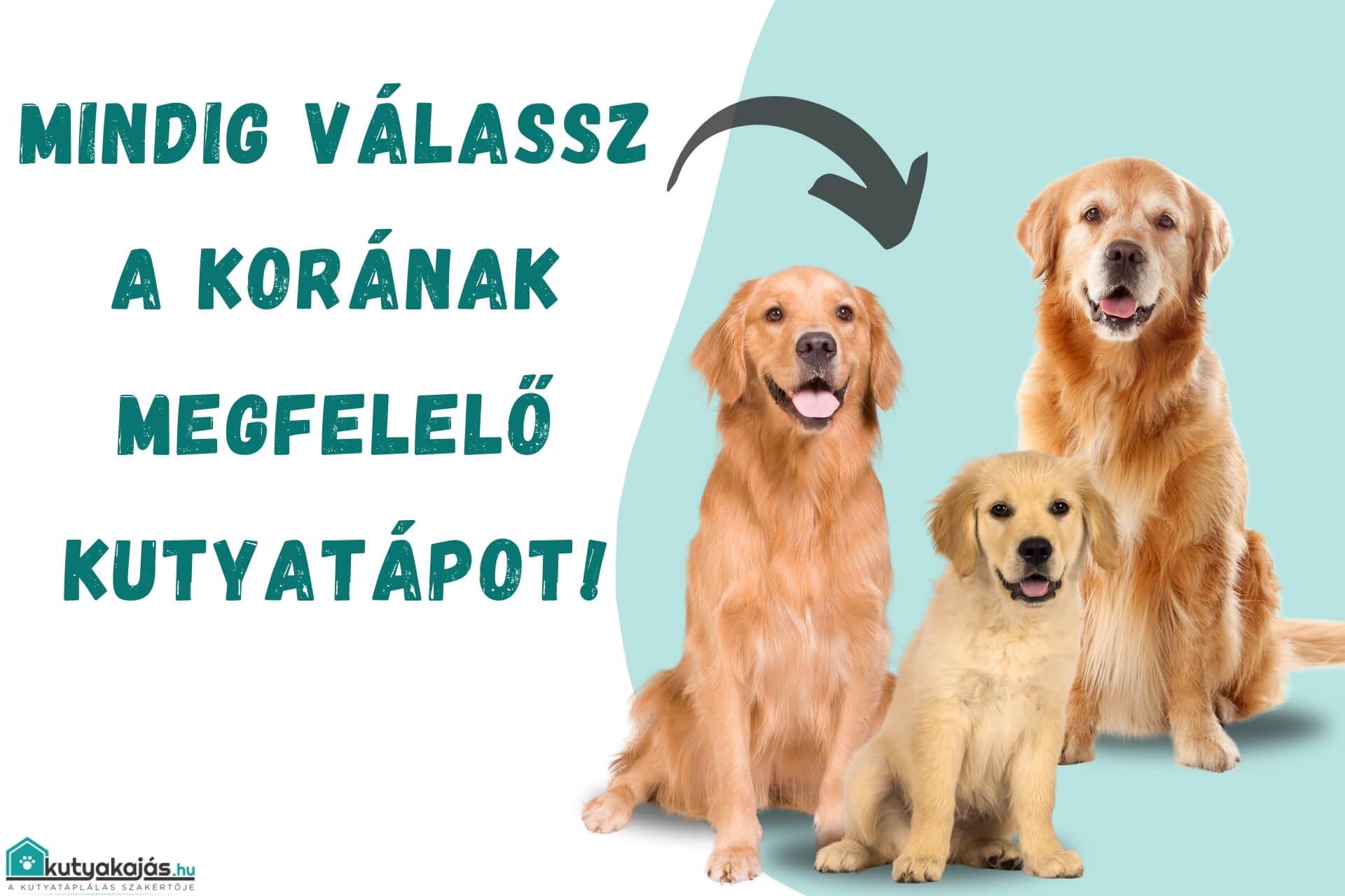 Természetesen -mind mennyiségben és összetételben- más fajta szárazeledelre van szüksége egy kutyának kölyök-, felnőtt- és idős korában.