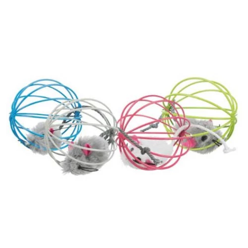 Trixie rácsos labda plüss egérrel a közepén - csengős, több színű ráccsal kapható játék macskáknak.