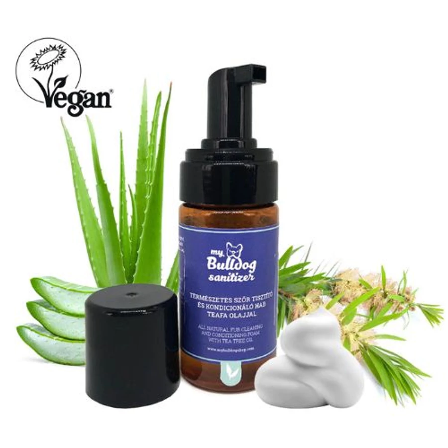 A minőségi alapanyagok és a gyógyhatású gyógynövények, melyek ellenőrzött ökológiai gazdálkodásból származnak és segítenek a kellemetlen szagok eltüntetésében. Már az első használat után érezhető az eredmény, amit a minőségi alapanyagok és gyógynövények közösen produkálnak. Nem kell félned! Ugyanúgy mint a többi termékünkben, a My Bulldog Sanitizerben sem találsz kőolajszármazékot, tartósítószert, illatanyagot, pálmaolajat és olyan alapanyagokat, melyek károsak kutyád egészségére és a környezetre.
