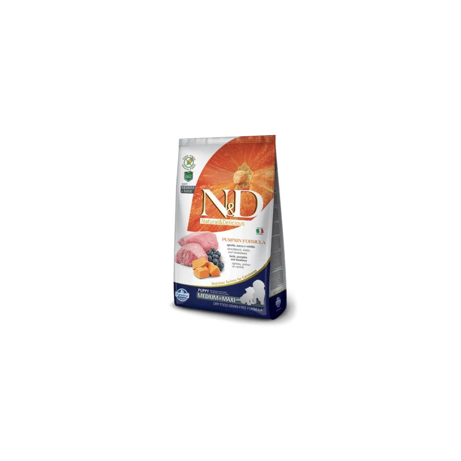 N&D Dog Grain Free bárány&áfonya sütőtökkel adult medium/maxi 12 kg teljes értékű, gabonamentes kutyatáp báránnyal, sütőtökkel és áfonyával felnőtt, közepes és nagytestű kutyák részére.