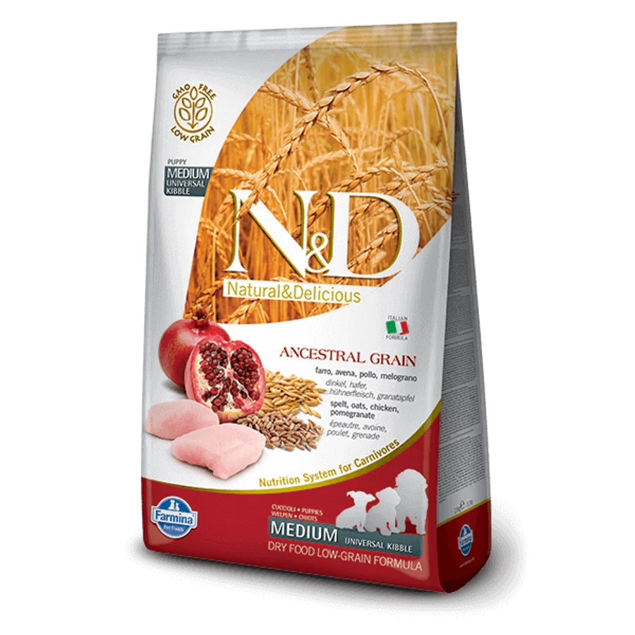 N&D Dog Ancestral Grain csirke, tönköly, zab&gránátalma puppy Medium&maxi 12kg