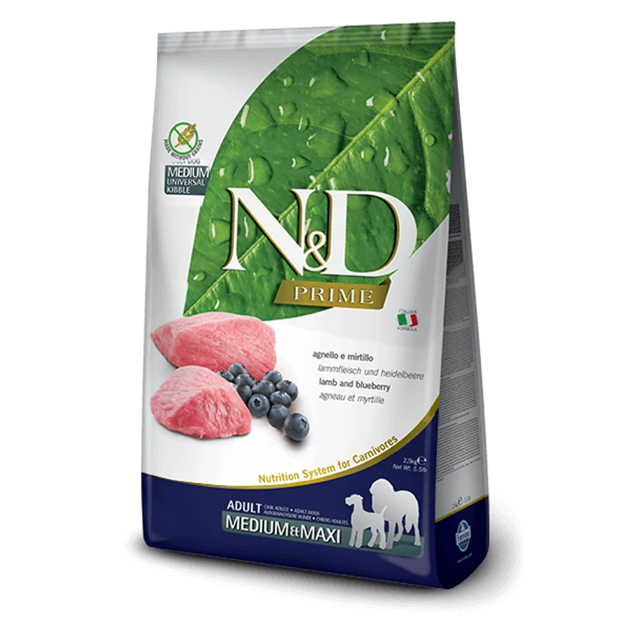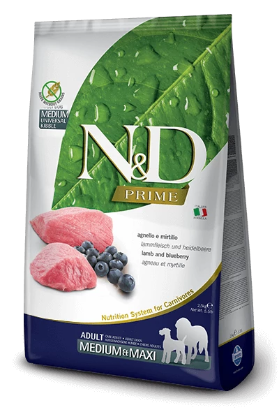 Az N&D Prime bárány&áfonya egy teljes értékű ízletes száraztáp közepes- és nagyméretű felnőtt kutyák számára.