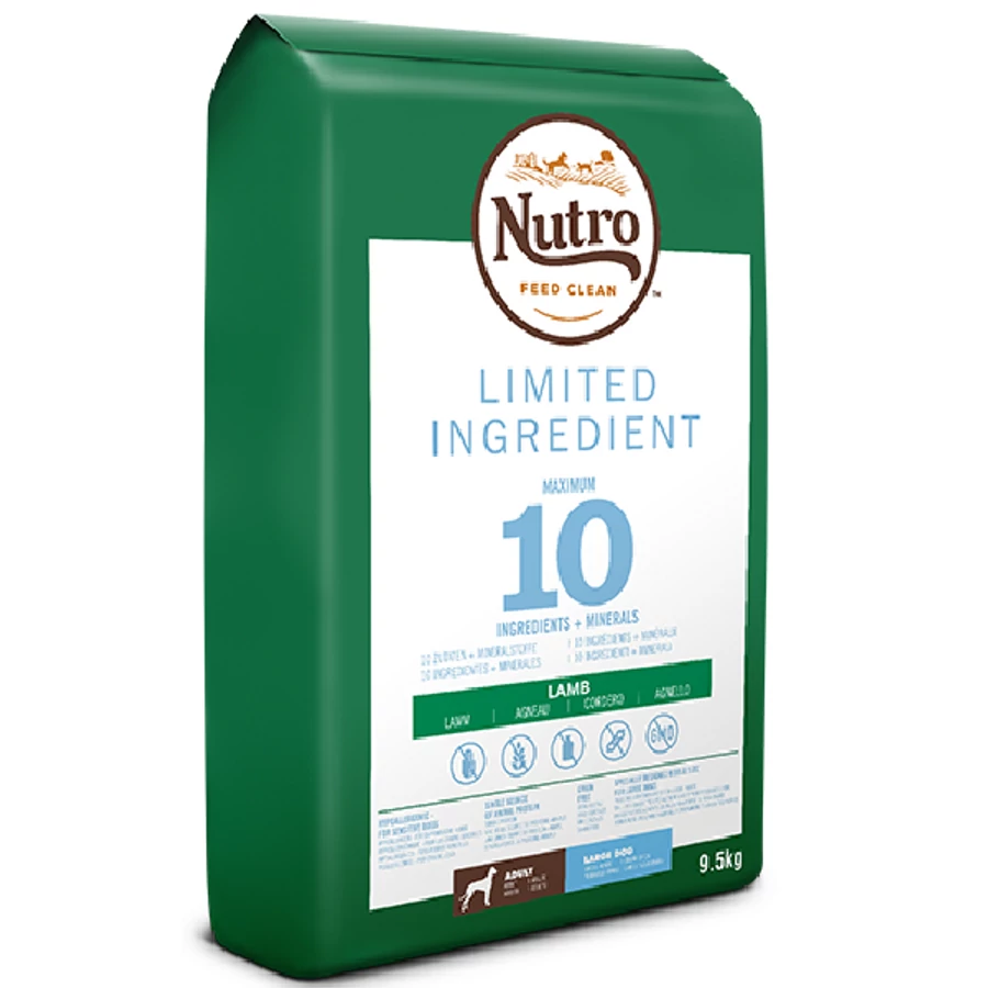A Nutro Limited Ingredient száraztáp bárányhússal nagytestű felnőtt kutyáknak csupán (legfeljebb) 10 alapanyagból valamint vitaminokból és ásványi anyagokból készül. Mivel ezek a receptek csupán egy állati fehérjeforrás felhasználásával és gabonamentesen készülnek, ezért hipoallergénnek minősülnek. Korlátozott összetételű terméksorunk ezért rendkívül hasznos érzékeny emésztőrendszerű kutyáknak.