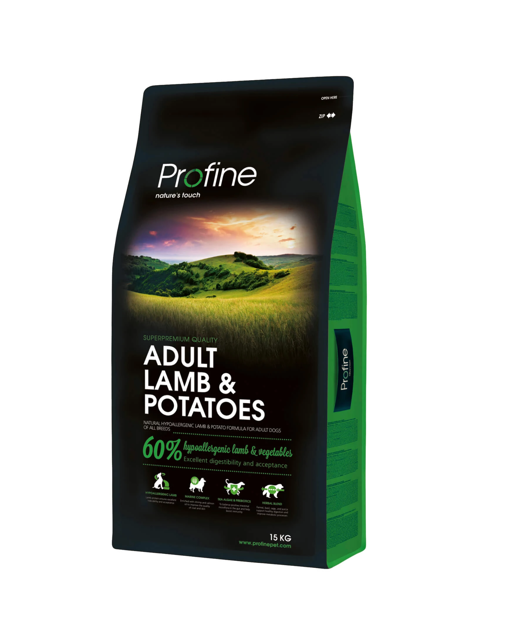A Profine Adult Lamb & Potatoes egy teljes értékű bárányos száraztáp felnőtt kutyák számára.