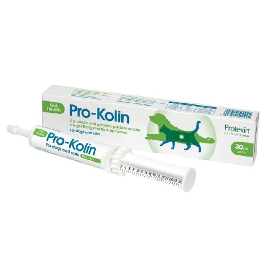 A Protexin pro-kolin paszta kutyusoknak és cicusoknak készült táplálékkiegészítő, amely probiotikumokat, prebiotikumokat, kaolint és pektint tartalmaz.
