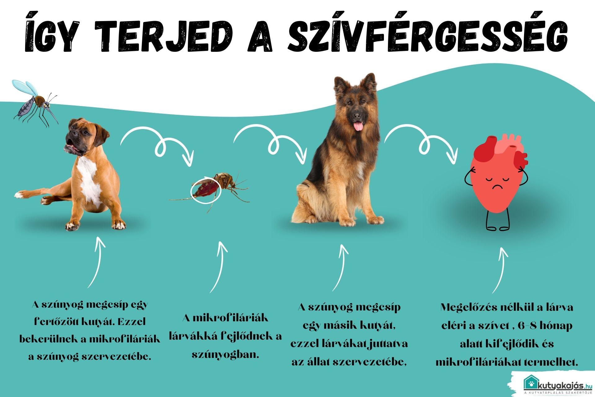 A kutya szívféreg betegséget egy fonálféregfajta, a Dirofilaria immitis okozza. Az említett féreg lárvái a fertőzött egyedekből szúnyogcsípés útján terjednek tovább. A szúnyog megcsípi a szívférges kutyát. Így kerül bele a féreg a szúnyogba a fertőzött kutya véréből. Ez a betegség sajnálatos módon egy örök körforgás. Amelyet csak úgy tudunk kivédeni, ha megvédjük kedvencünket a megfertőződéstől szívféreg elleni tabletta kutyáknak, vagy szívféreg elleni gyógyszer alkalmazásával.