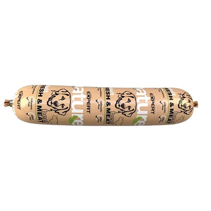 Pet expert kutyaszalámi ínycsiklandozó marhahúsos finomság, mely hozzáadott színezék, ízesítő és tartósítószerek nélkül készült.