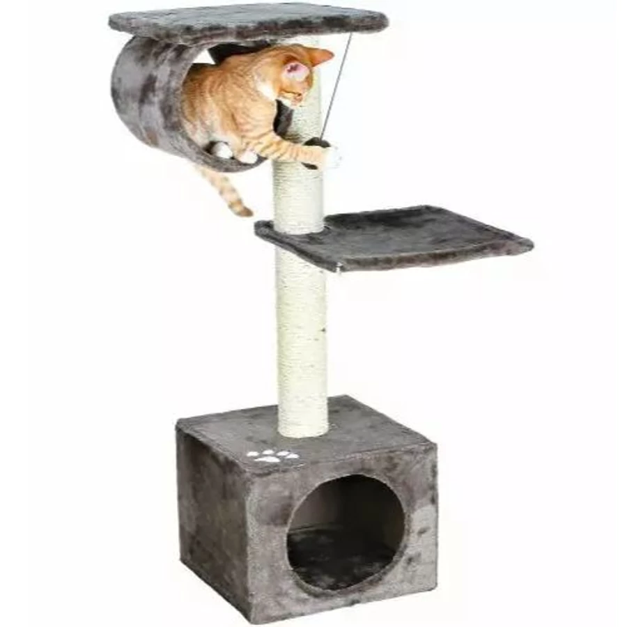 A Trixie San Fernando kiváló minőségű szürke színű, plüss és szizál borítású macskabútor odúval, párnázott fekhellyel, levehetző függőággyal és logó játék labdával. A macskáknak koptatniuk kell a karmaikat nehogy azok elakadjanak és ezáltal komolyabb sérülések történjenek.