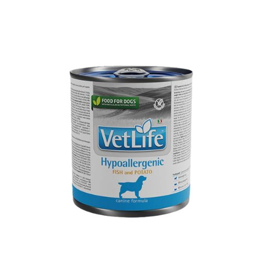 Vet Life Natural Diet Dog konzerv Hypoallergenic Fish&Potato speciális diétás nedves eledel kutyák számára. Azoknak a kis kedvenceknek ajánlott, akik érzékenyek lehetnek bizonyos táplálékokra vagy tápanyagokra.