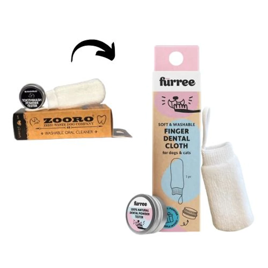 A csomag tartalma: 1 db Fürree ujjra húzható fogtisztító kendő és 1 db Fürree fogápoló por minta.